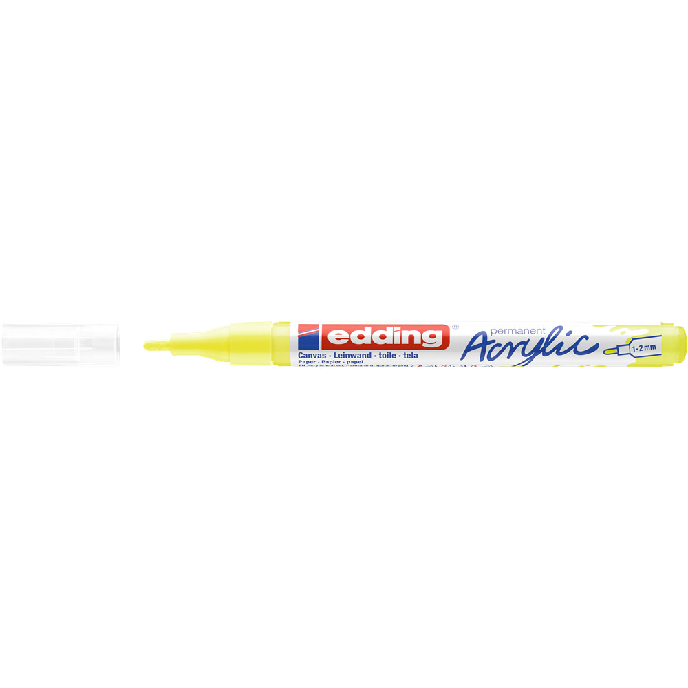 Akril marker világos vagy sötét felületekre történő festéshez, ideális olyan anyagokhoz, mint a vászon vagy a festőpapír. - A kerekített csúcs vonalvastagsága 1-2 mm. - A kiváló minőségű, pigmentált, vízbázisú akrilfesték száradás után rendkívül tartós, átlátszatlan, fényálló és szagtalan. - A neon sárga szín áttetsző. Megfelelő pótcsúcsok (edding 5300 pótcsúcsok) elérhetők.- 20 féle színválasztékban elérhetők- Keresse a további változatokat - edding 5000 és az edding 5100-at, valamint az edding 5400 3D hatású 2 végű akril markereket. Katalóguskód: 36444