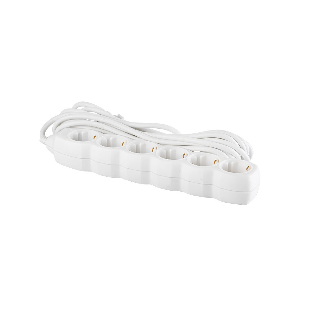 Beltéri hosszabbító, elosztó hat csatlakozó aljzattal 5m hosszúkábellel. Kábel: H05VV-F 3G1,0mm Fehér 6-os elosztó Katalóguskód: 14478