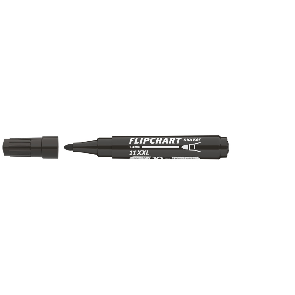 Flipchart tömbök és egyéb papírívek feliratozására alkalmas, vízbázisú festékkel töltött marker. A festék a papír másik oldalára nem üt át. Megnövelt élettartam a nagyobb méretű testnek köszönhetően. Kerekített csúccsal. Vonalvastagság: 3 mm.. 10DB/DOBOZ Katalóguskód: 13621