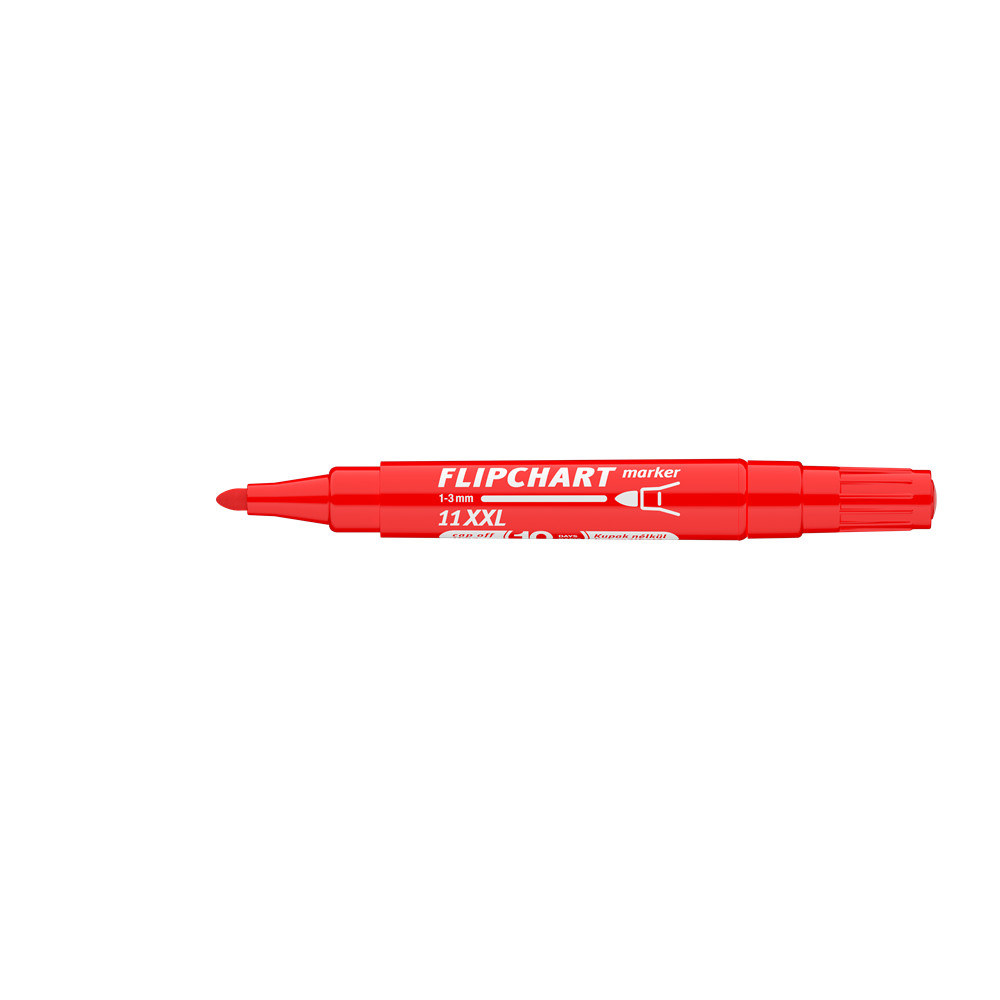 Flipchart tömbök és egyéb papírívek feliratozására alkalmas, vízbázisú festékkel töltött marker. A festék a papír másik oldalára nem üt át. Megnövelt élettartam a nagyobb méretű testnek köszönhetően. Kerekített csúccsal. Vonalvastagság: 3 mm.. 10DB/DOBOZ Katalóguskód: 13628