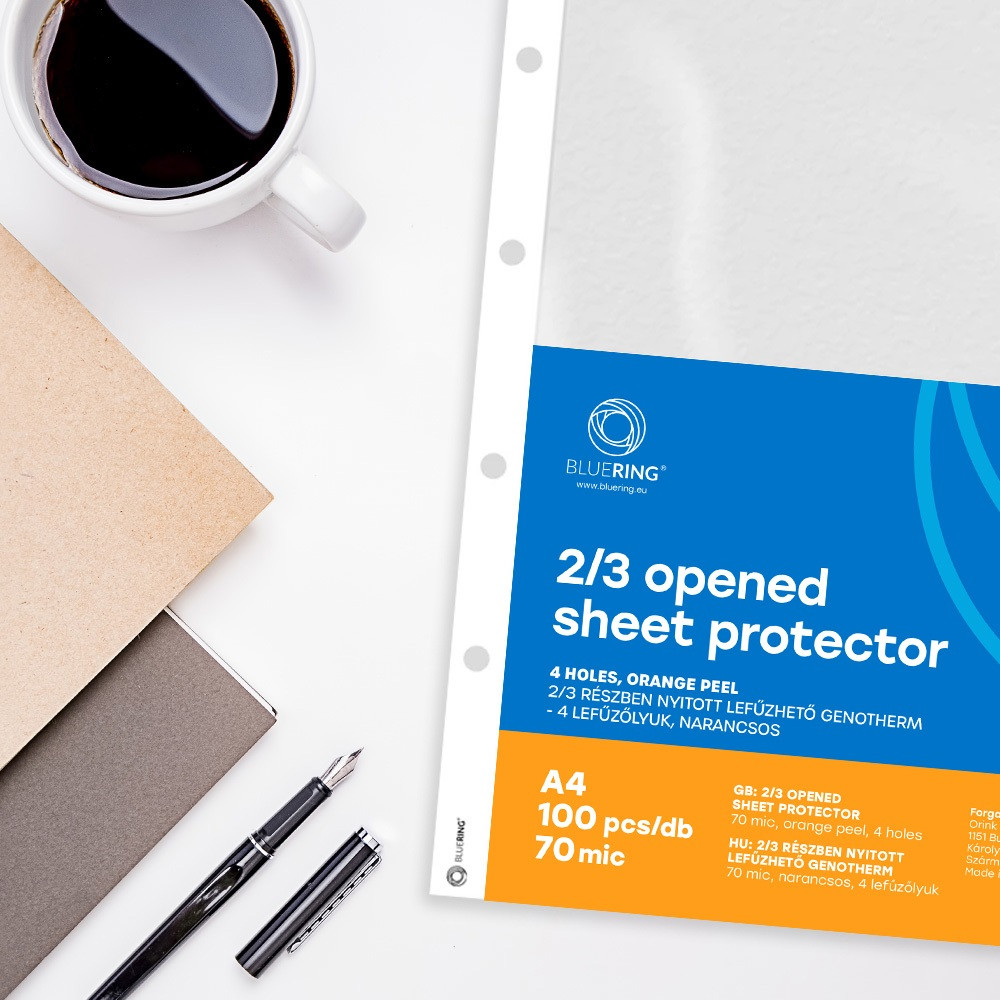 Genotherm lefűzhető, A4, 70 micron narancsos belül 2/3 részben nyitott Bluering® 100 db/csomag,