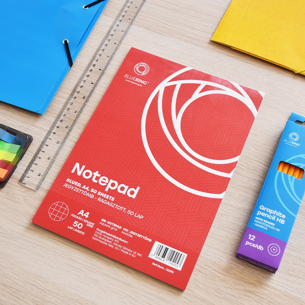 Jegyzettömb ragasztott, A4, 50lap, Bluering® kockás