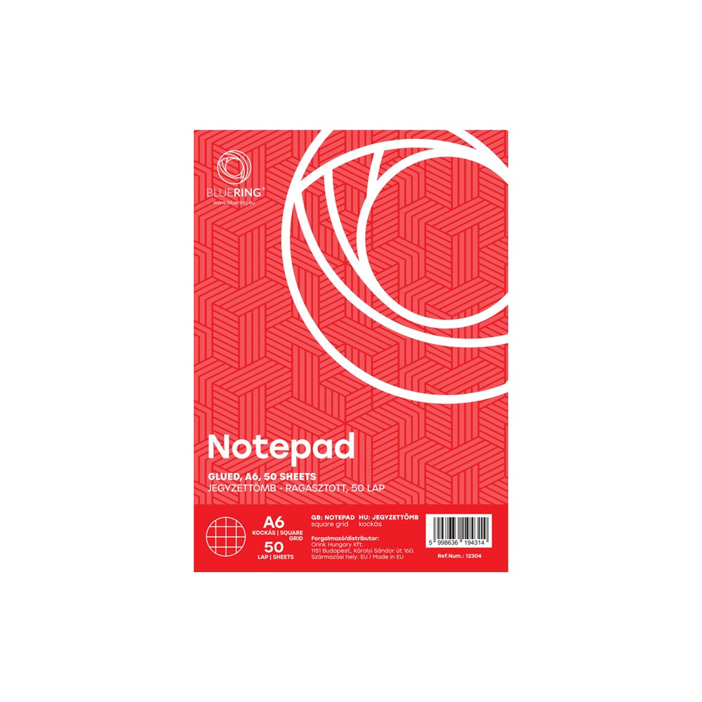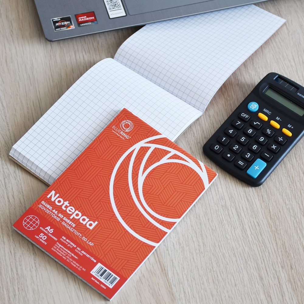 Jegyzettömb ragasztott, A6, 50lap, Bluering® kockás