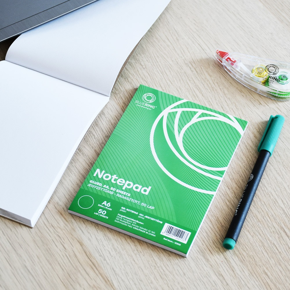 Jegyzettömb ragasztott, A6, 50lap, Bluering® sima