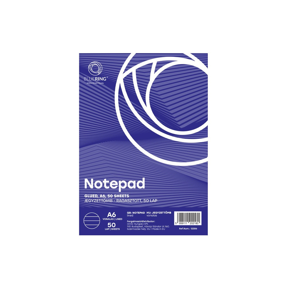 Jegyzettömb ragasztott, A6, 50lap, Bluering® vonalas