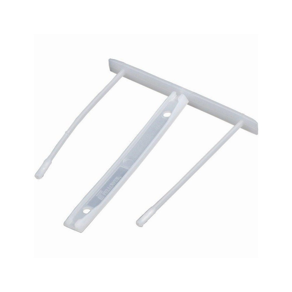 Két darabos műanyag lefűző klipp Gondosan kötegbe fogja a dokumentumokat a tároláshoz Lehetővé teszi a papírok gyors és könnyű eltávolítását a mappákból 100%-ban újrahasznosított anyagból készült Szín: fehér Katalóguskód: 29021