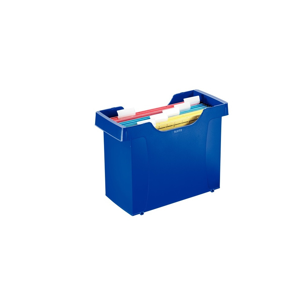 Formatervezett függőmappa tartó, amely könnyen hordozható és lehetővé teszi a függőmappatartók egymásra helyezését. A4-es méretű függőmappák tárolására alkalmas 5 db Leitz Alpha függőmappával szállítjuk (vegyes színek) Kis helyet foglal Lowered front for easy readability of tabs Fogantyú a könnyebb horhozhatóság érdekében Egymásra helyezhető Katalóguskód: 35781