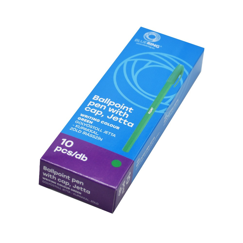 Golyóstoll 0,7mm eldobható, hatszögletű test kupakos Bluering® Jetta, írásszín zöld