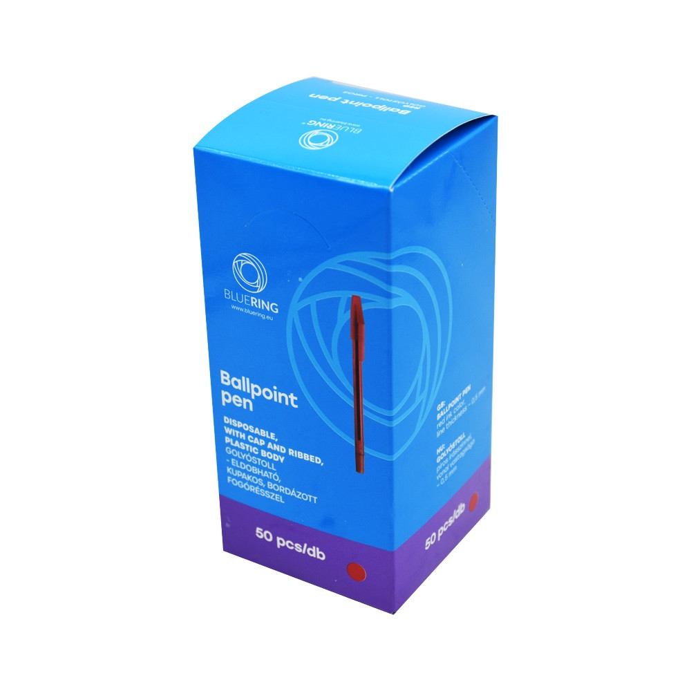 Golyóstoll 0,5mm eldobható kupakos kerek test bordázott fogórész Bluering® , írásszín piros